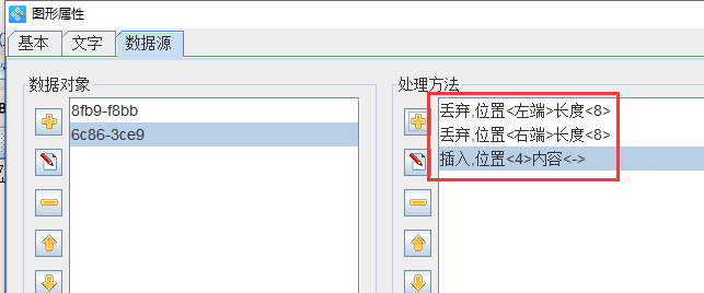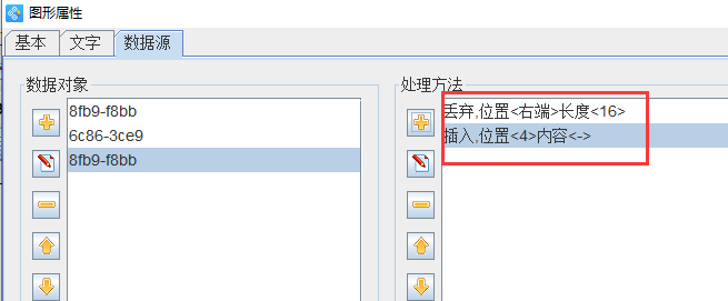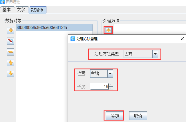 在数据对象中,再引用*次二维码数据,这次丢弃右端的16位数据,然后再插入*个特殊字符,点击添加。