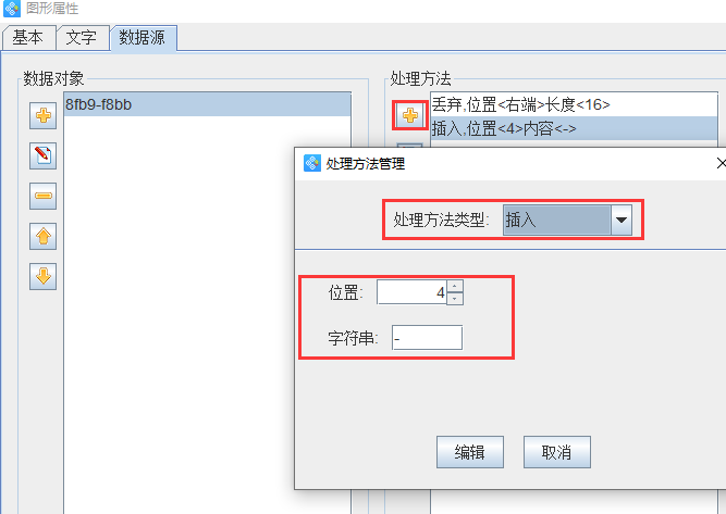 点击“+”号按钮,处理方法类型选择“插入”,位置为4,字符串为-,点击添加。