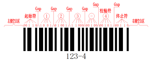 每个字元由三条二空组成,其中**个和*后*个元素都是条。相邻的两个字元之间由*个窄空Gap隔开。